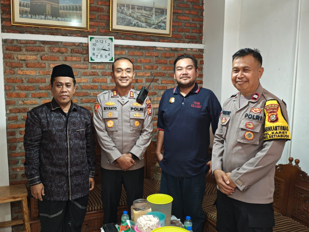 Jakarta Selatan, 15 April 2026 — Dalam upaya memperkuat sinergi antara aparat kepolisian dan tokoh masyarakat demi menjaga situasi yang aman dan kondusif di wilayah Kecamatan Setiabudi, Kapolsek Metro Setiabudi, AKBP Riyanto, SH. SIK. MA, didampingi oleh Aiptu Triyatno selaku Bhabinkamtibmas Kelurahan Karet, melaksanakan silaturahmi dengan tokoh agama di wilayah Kelurahan Karet.