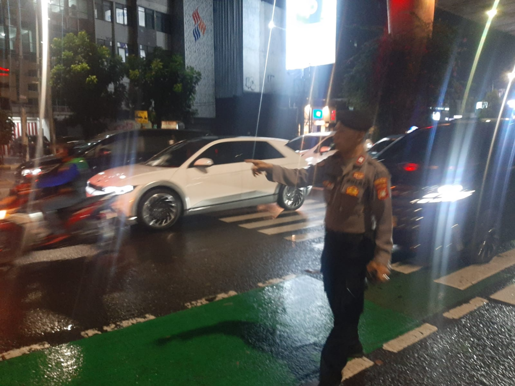 Polsek Metro Kebayoran Baru mengimbau kepada masyarakat untuk tetap tertib berlalu lintas serta mematuhi arahan petugas demi menjaga kelancaran dan keselamatan bersama di jalan raya.